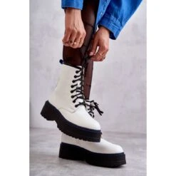 Les bottes pour femmes uniques ont une fixation classique avec des lacets ronds et une fermeture éclair qui facilite l’enfilage des chaussures. Ils ont des coutures délicates sur la tige. Fabriqué en cuir écologique. Le contrefort de talon renforcé stabilisera le pied. Les bottes sont montées sur un talon plat et massif et une plate-forme, qui est en outre garnie de fil. Lorsque vous choisissez une taille, veuillez utiliser le tableau des tailles.
