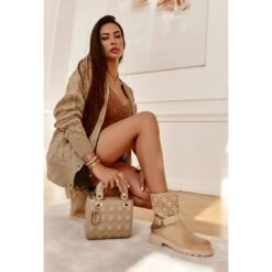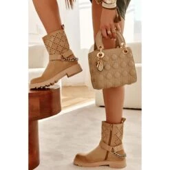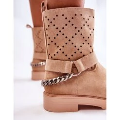Ces superbes bottes pour femmes sont fabriquées en daim écologique avec un motif ajouré. Fermeture zippée sur le côté de la tige. Elles sont dotées d’une chaîne décorative et d’un talon renforcé. Montées sur un talon plat, ce qui les rend extrêmement confortables et stables. Ce modèle a une semelle intérieure souple en cuir écologique. Assurez-vous de vérifier les autres bottes disponibles dans notre offre! Lorsque vous choisissez une taille, veuillez utiliser le tableau des tailles.